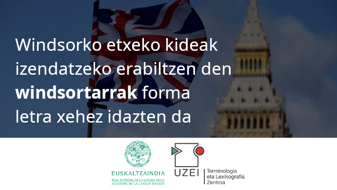 - Windsorko etxeko kideak izendatzeko erabiltzen den windsortarrak forma letra xehez idaztekoa da