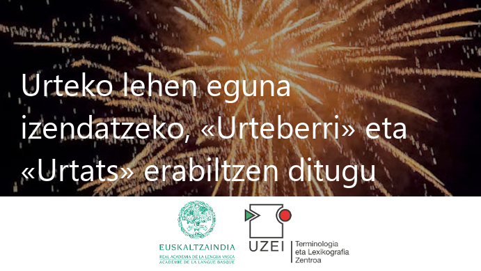 - Urteko lehen eguna izendatzeko, Urteberri eta Urtats erabiltzen ditugu euskaraz.